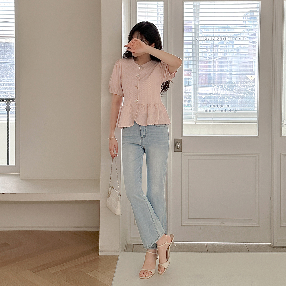 空气 凉爽 柔丝 麻糬 喇叭 牛仔色 裤子