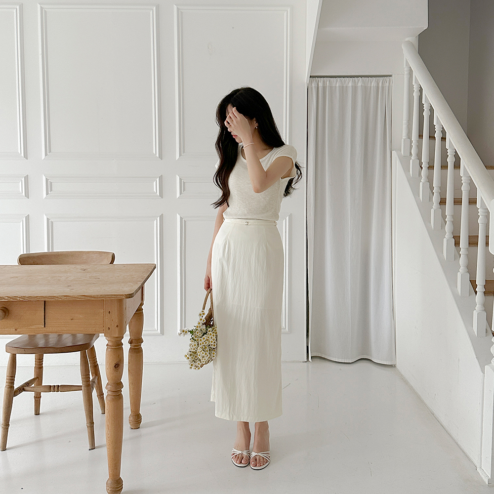 莫代尔 U领 修身 条绒 帽檐袖 T恤衫