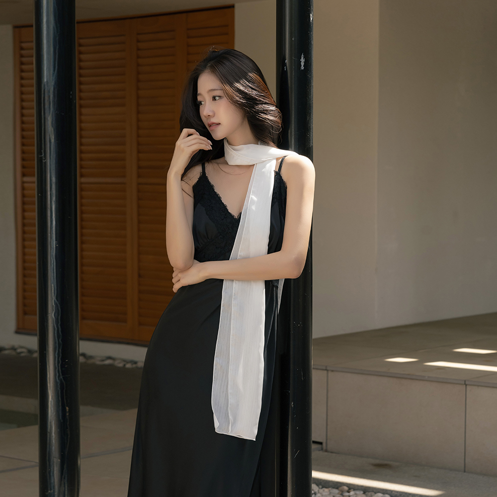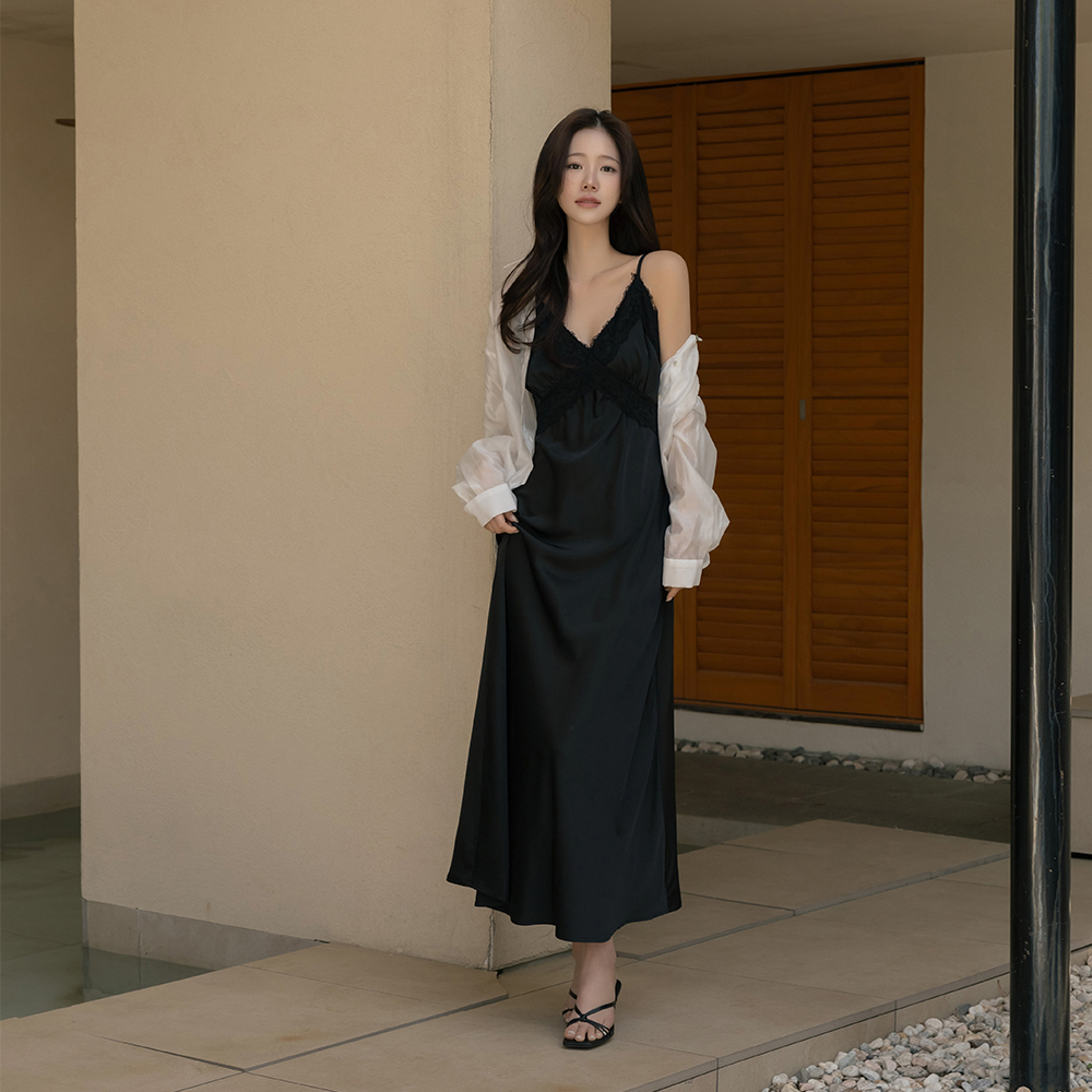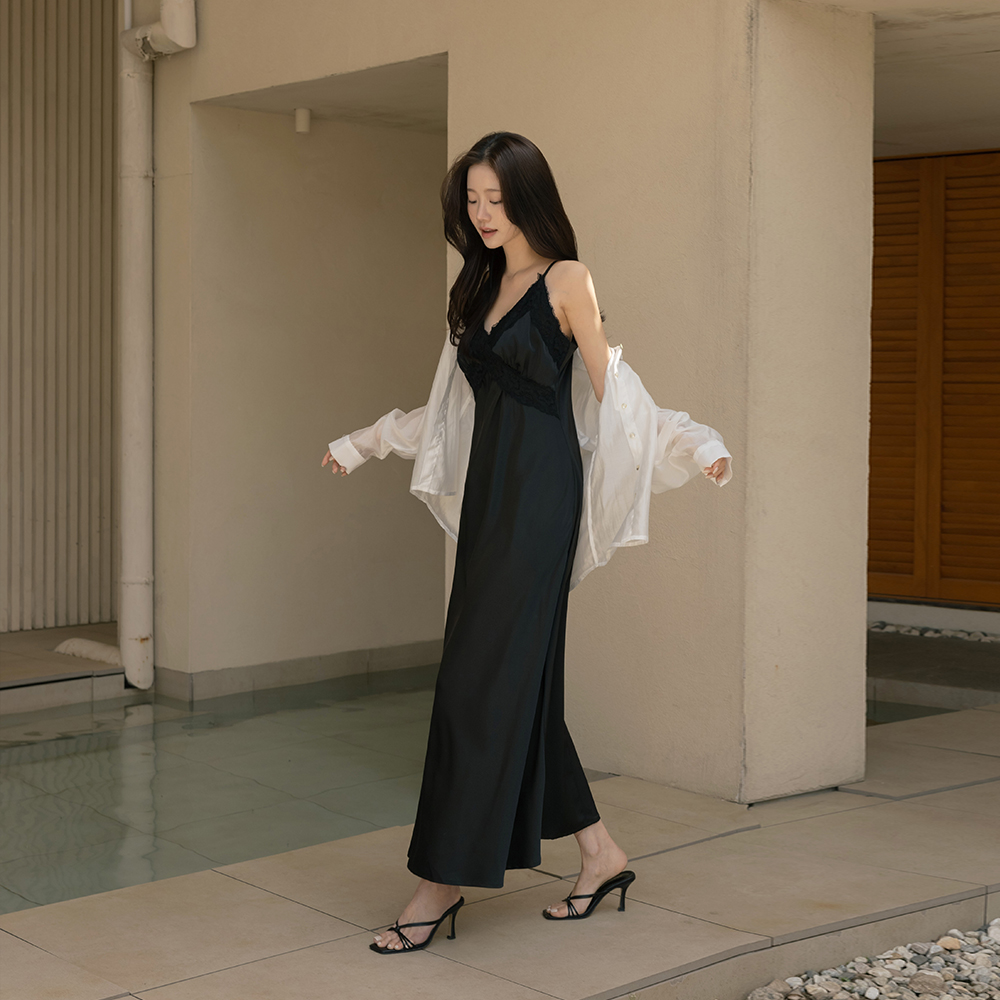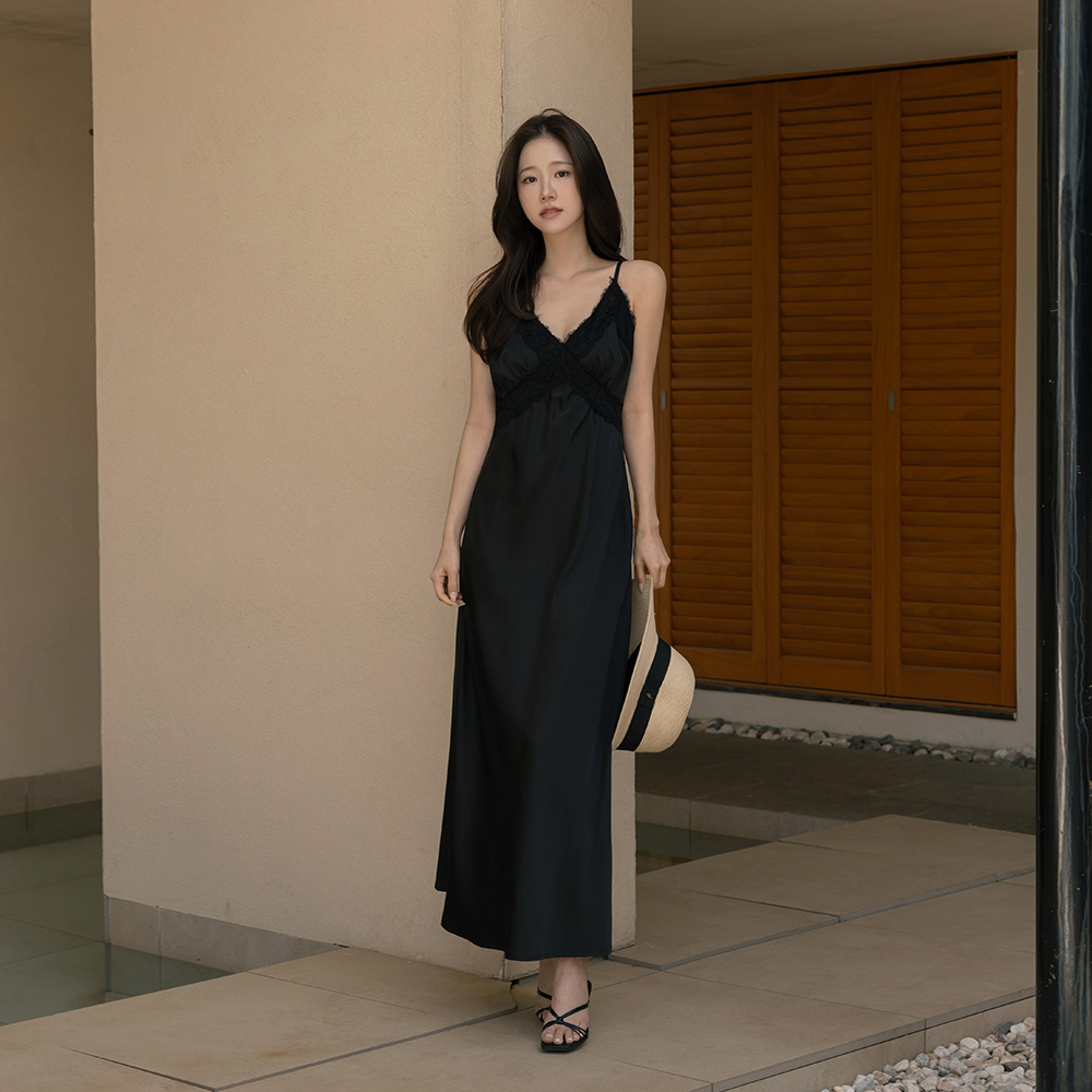 디어 蕾丝 绸缎 长款 背心 连衣裙
