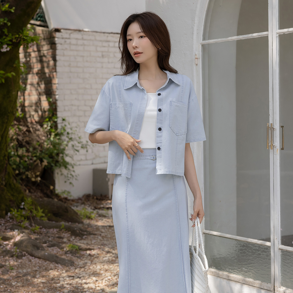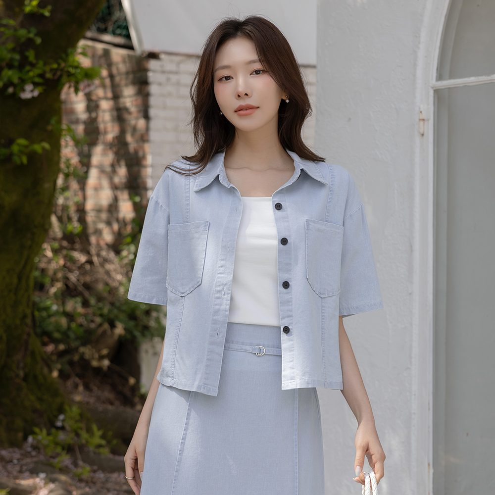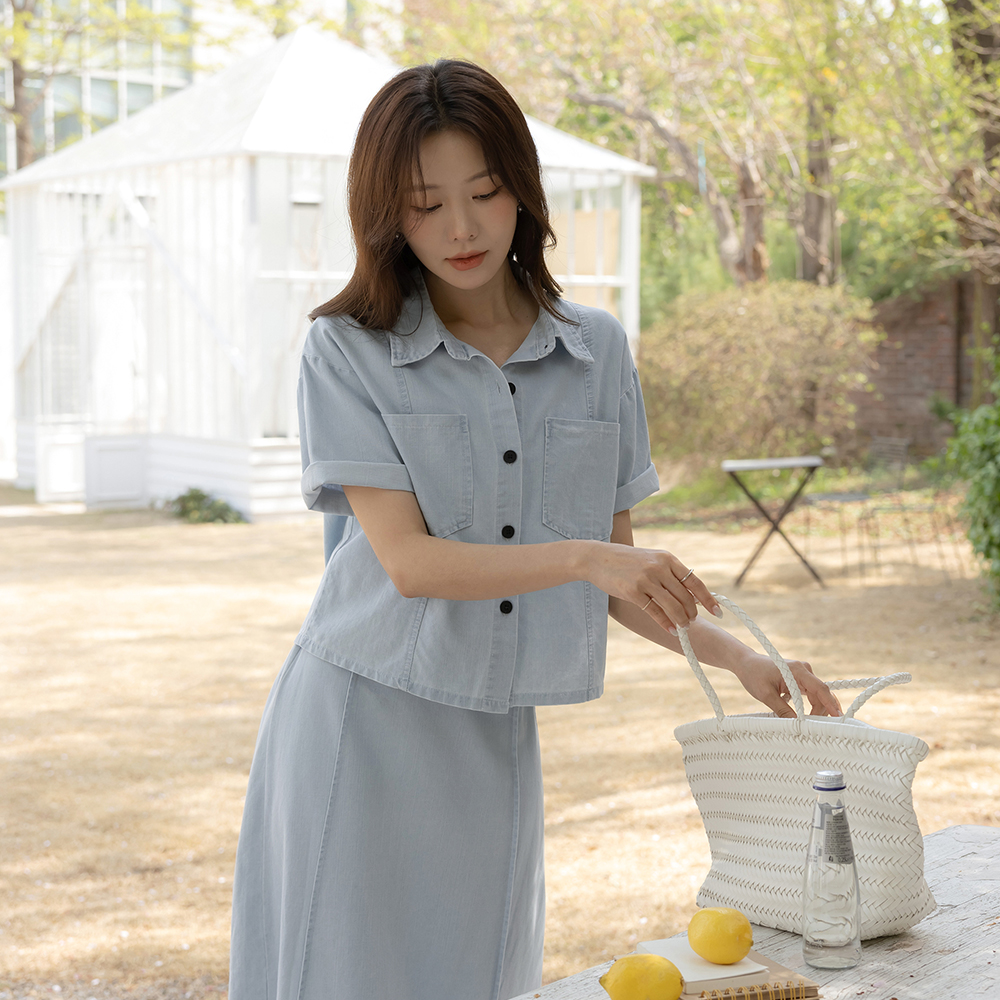 [O:neul] 柔丝 莫代尔 苗条 方领 短袖 T恤衫